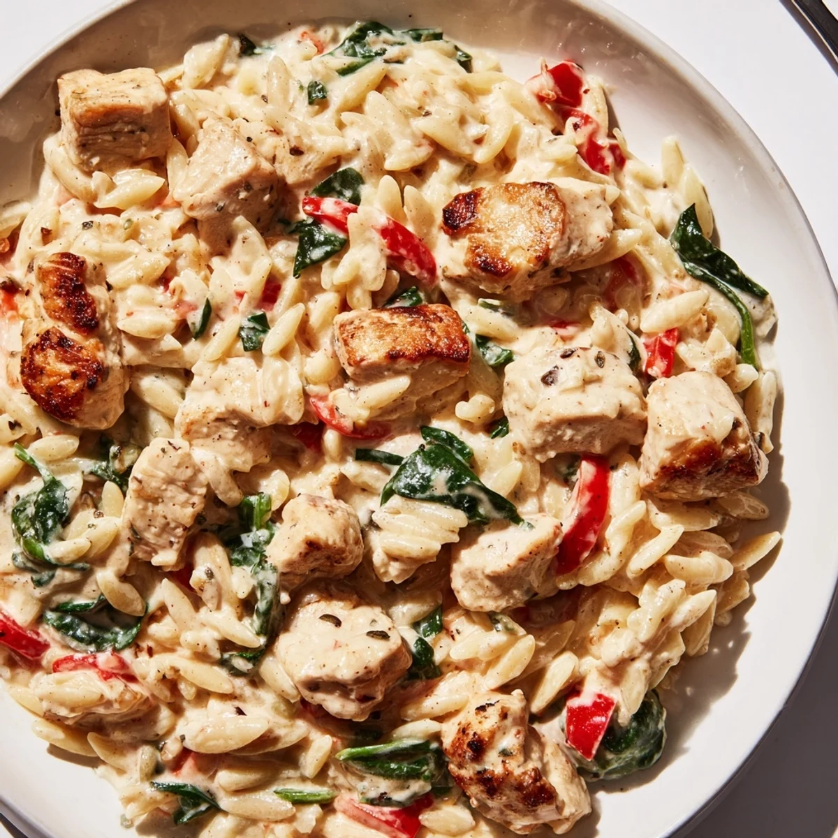 This one-pot Cajun chicken Alfredo orzo delivers restaurant-quality flavor with minimal effort. Tender diced chicken gets a generous coating of zesty Cajun seasoning before joining orzo pasta in a velvety sauce made with heavy cream and Parmesan. The magic happens as the orzo cooks directly in the broth and cream, absorbing all those delicious Cajun flavors while starch released from the pasta naturally thickens the sauce to perfection. Ready in just 40 minutes, this dish strikes the perfect balance between creamy comfort food and bold Louisiana-inspired spices.
