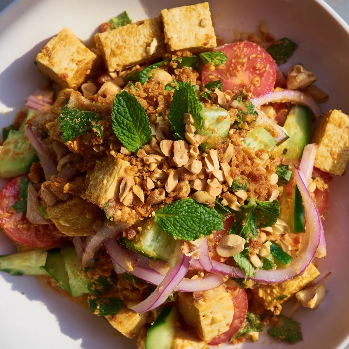 It's best served immediately after tossing with the dressing to maintain the tofu's texture and keep vegetables crisp. You can prep all ingredients beforehand and combine just before serving. If storing, keep the dressing separate and add at the last minute.